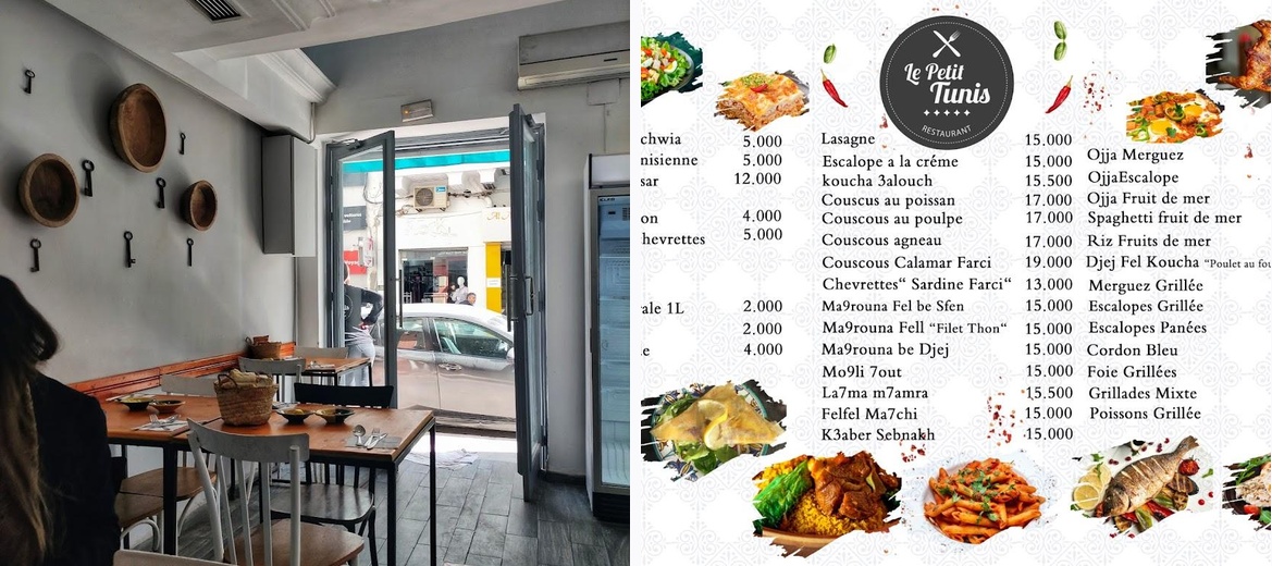 The price range at Le Petit Tunis is quite affordable, with most dishes priced between TND 10–20.
